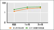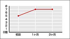 グラフの横軸の「初回」の表示は初めてトレーニングを受けたとき、「1ヶ月」の表示はトレーニングの開始後1ヶ月を経過したとき、「3ヶ月」の表示は3ヶ月を経過したときを示しています。